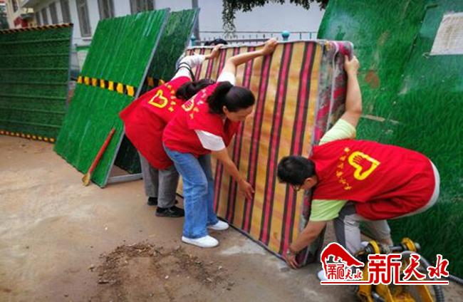 社区工作人员和志愿者先后对福利区垃圾点、楼道、道路进行重点清扫,特别针对废旧木板、旧家具烂床垫等堆放在绿化带和楼道,及福利区内卫生死角、杂物间等区域进行彻底集中清理,同时清除小区楼房墙面及楼道内乱贴乱画的小广告、宣传单等进行了清理。同时向辖区的居民宣传环保意识,将所居住的小区卫生打扫好,堆放的杂物要及时清理。