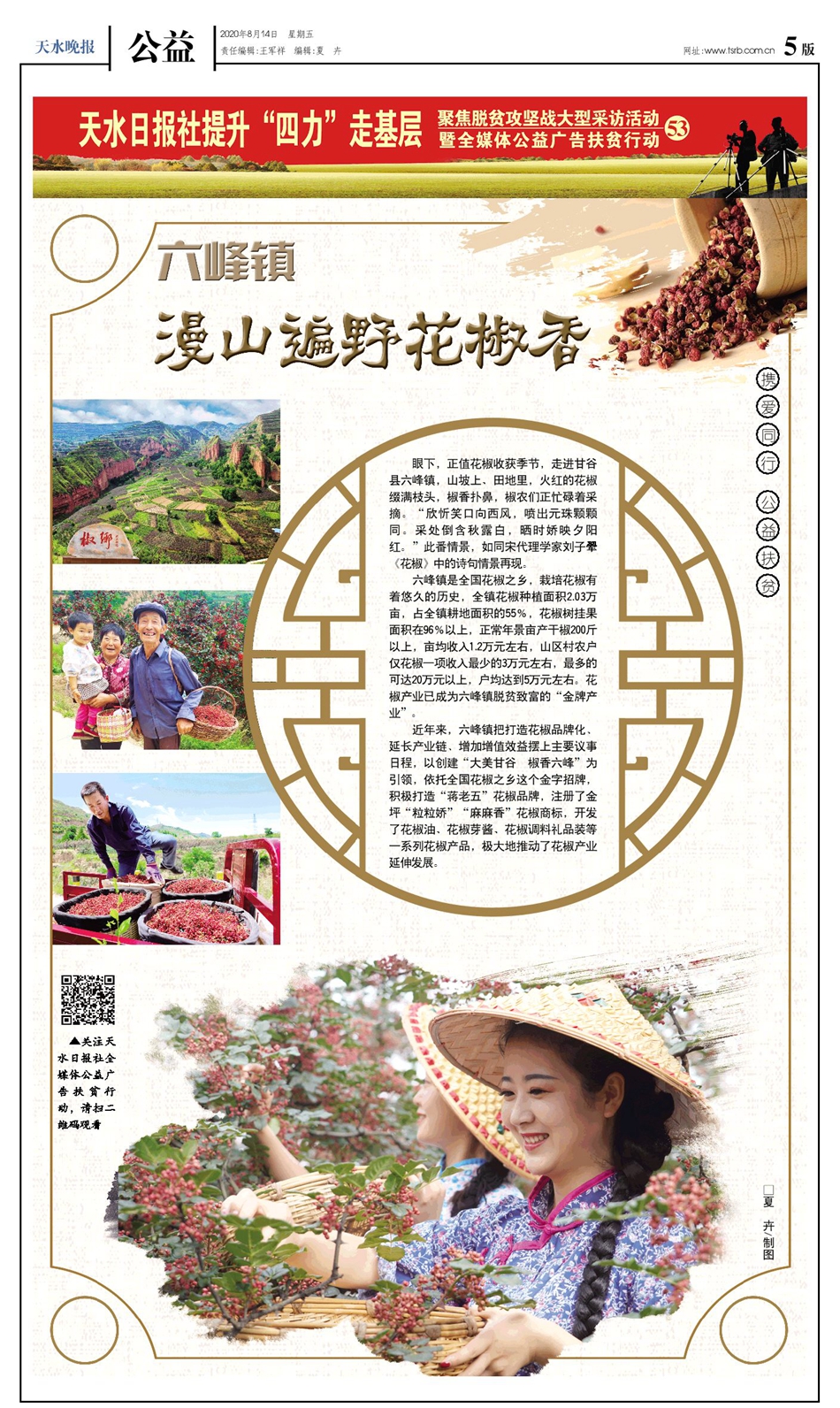 六峰镇花椒种植是甘谷县花椒产业发展的缩影。据了解,甘谷县花椒种植面积达22万亩,年产量1.2万余吨,产值在10亿元以上,6.8万贫困人口通过花椒产业稳定脱贫。