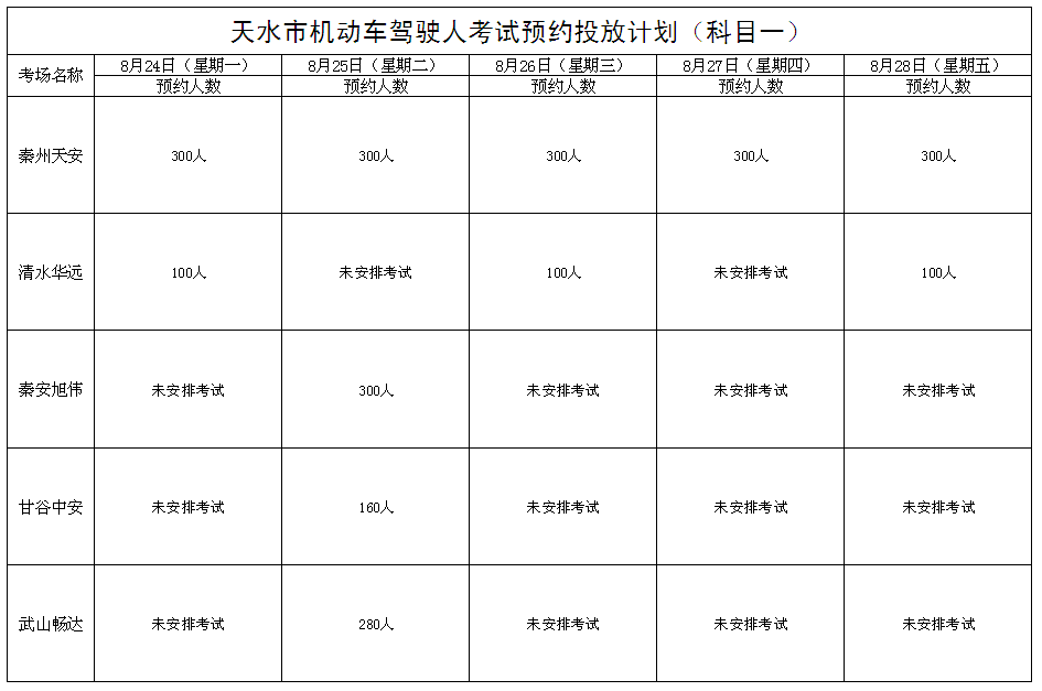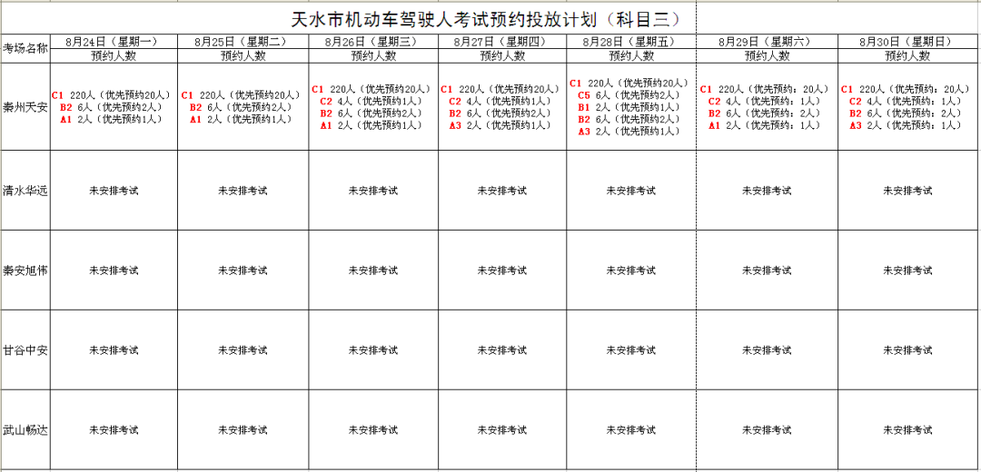 2020年8月24日至8月30日的机动车驾驶人考试计划于8月14日投放,请考生合理安排自己的时间进行考试。有考试需求的考生请登陆公安部交通安全综合服务管理平台(http://gs.122.gov.cn/)或者公安部“交管12123”手机APP进行网上考试预约,考试时请务必携带本人二代身份证。