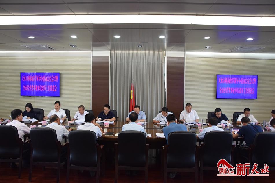 新天水讯【天水日报记者吴丽娜】8月13日,市委常委、组织部部长贾义翔主持召开市机构改革领导小组办公室会议暨全市经营类事业单位改革推进会。他强调,要认真落实中央、省委关于经营类事业单位的改革精神以及中央编办各项文件要求,紧盯改革目标任务,准确把握政策规定,稳妥有序推进经营类事业单位改革。