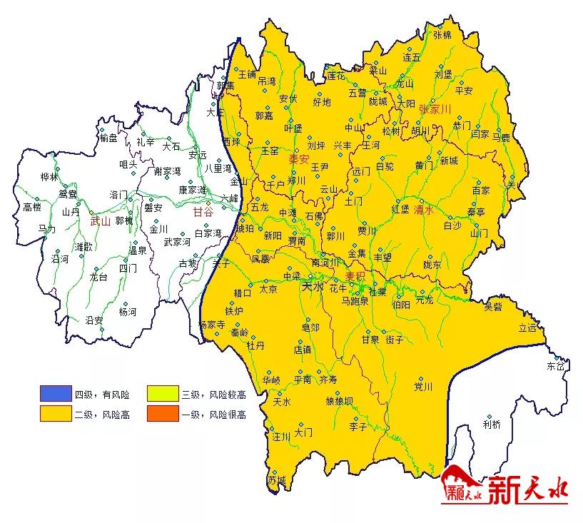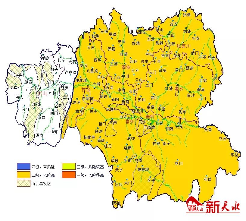 天水市气象防灾减灾指挥部办公室与天水市防汛抗旱指挥部办公室8月15日17时40分联合发布山洪灾害Ⅱ级(橙色)气象风险预警: