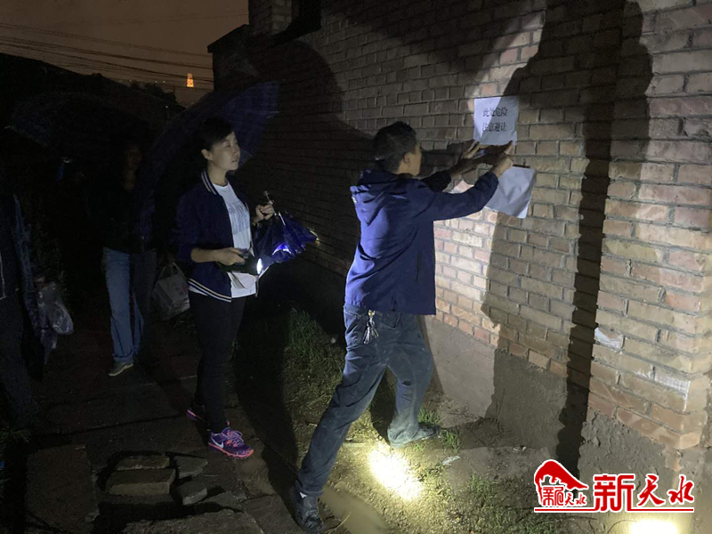 七里墩街道岷山社区夜间防汛巡查