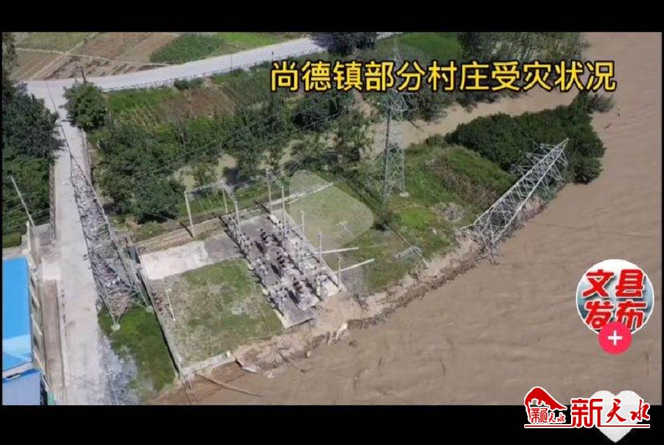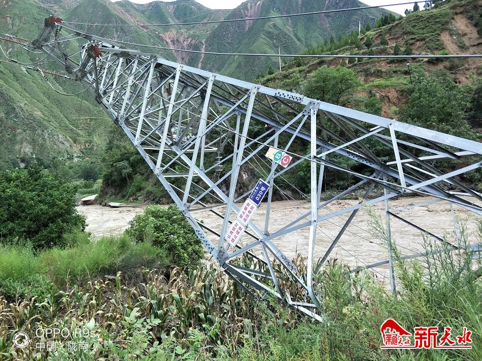 国网天水供电公司抢修的两基铁塔,位于文县尚德镇的白龙江边。据“文县发布”的航拍照片,这里大面积过水,河堤、电网严重被毁。特别是沿江走的公路,有的路基被洪水从下面掏空,小车可以勉强通行,运输抢修器材的卡车通行困难。
