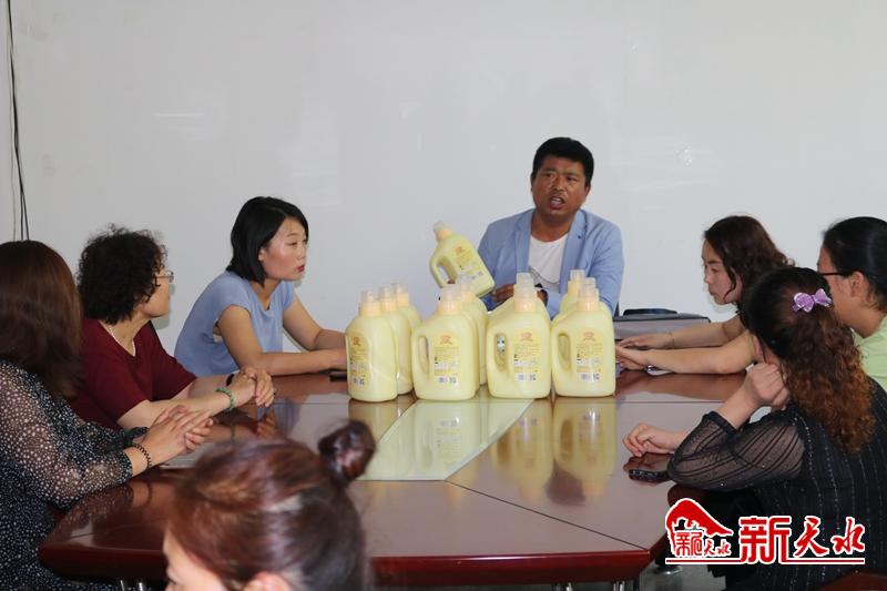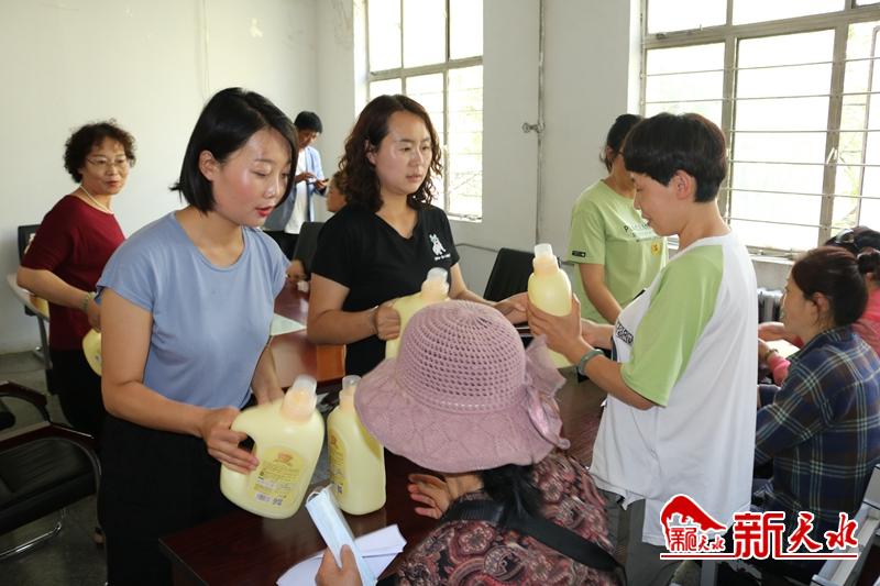 新天水讯 西安晨曦天睿商贸有限公司走进七里墩街道东十里社区开展了免费赠送洗衣液公益活动。东十里社区妇联主席王旭霞以及在环境卫生整治中表现突出的妇女代表参加了此次活动。