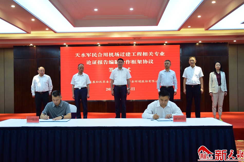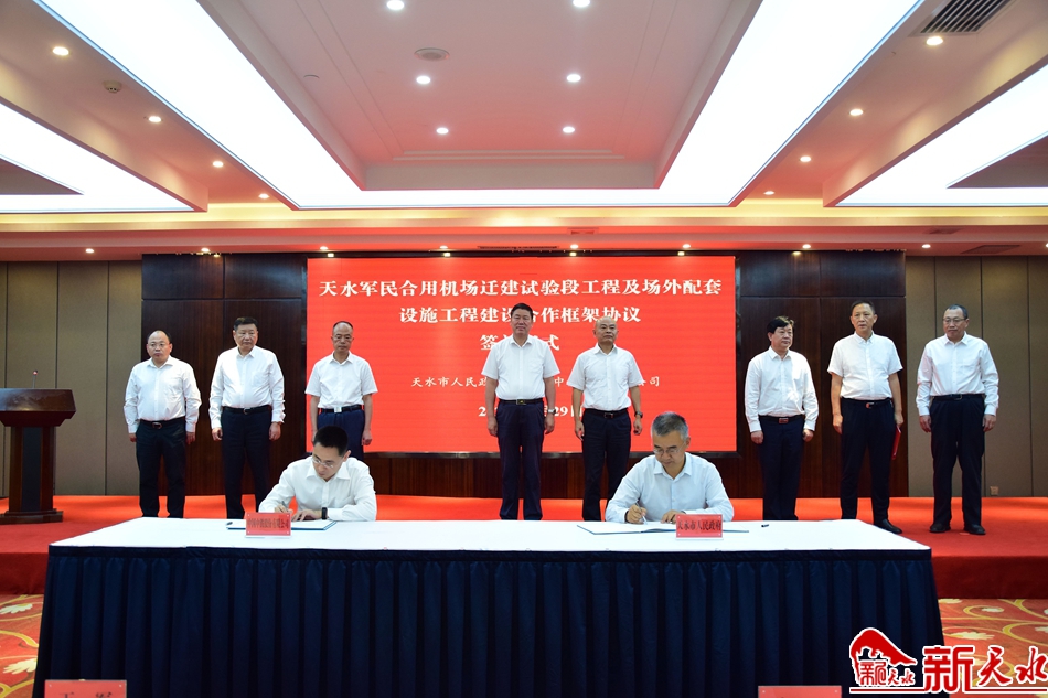 新天水讯【天水日报记者吴丽娜】8月29日下午,天水市政府与中国中铁股份有限公司、天水市发改委与南方中金环境股份有限公司分别签订合作框架协议,共同推进天水军民合用机场迁建工程。