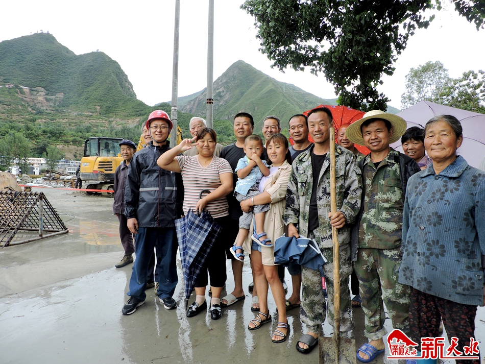 新天水讯(通讯员 张柯)8月30日雨中,文县丹堡乡杨家坝村,村民们高兴地与国网天水供电的员工合影。
