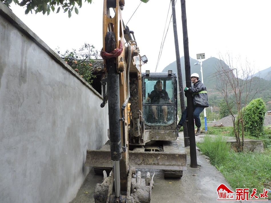 还有的村民并没有出现在合影中——镜头留给了不远处的那台挖掘机,那是村长无偿调来,支援电网抢修人员开挖杆坑的。