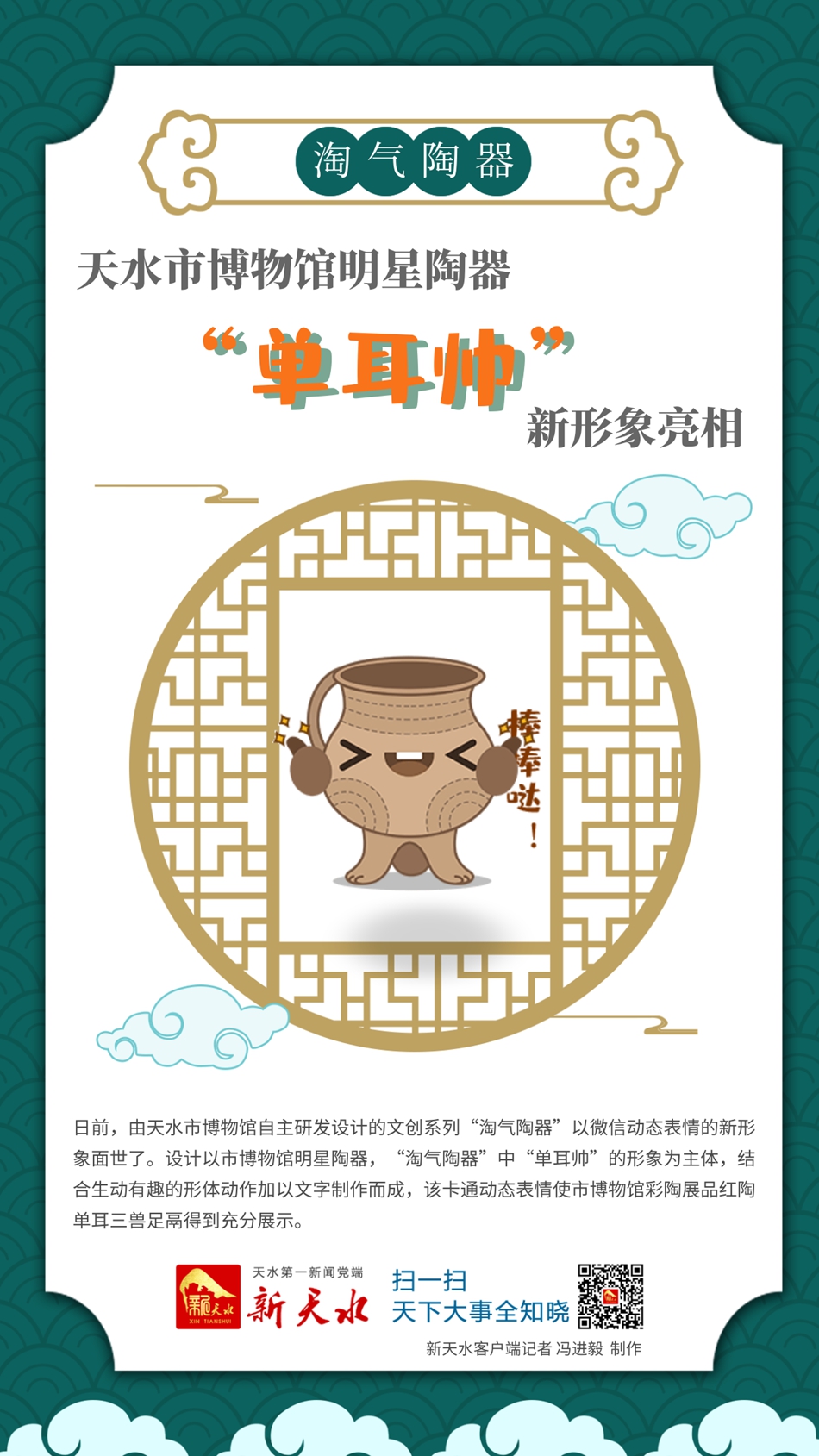 微海报丨天水市博物馆明星陶器“单耳帅”新形象亮相