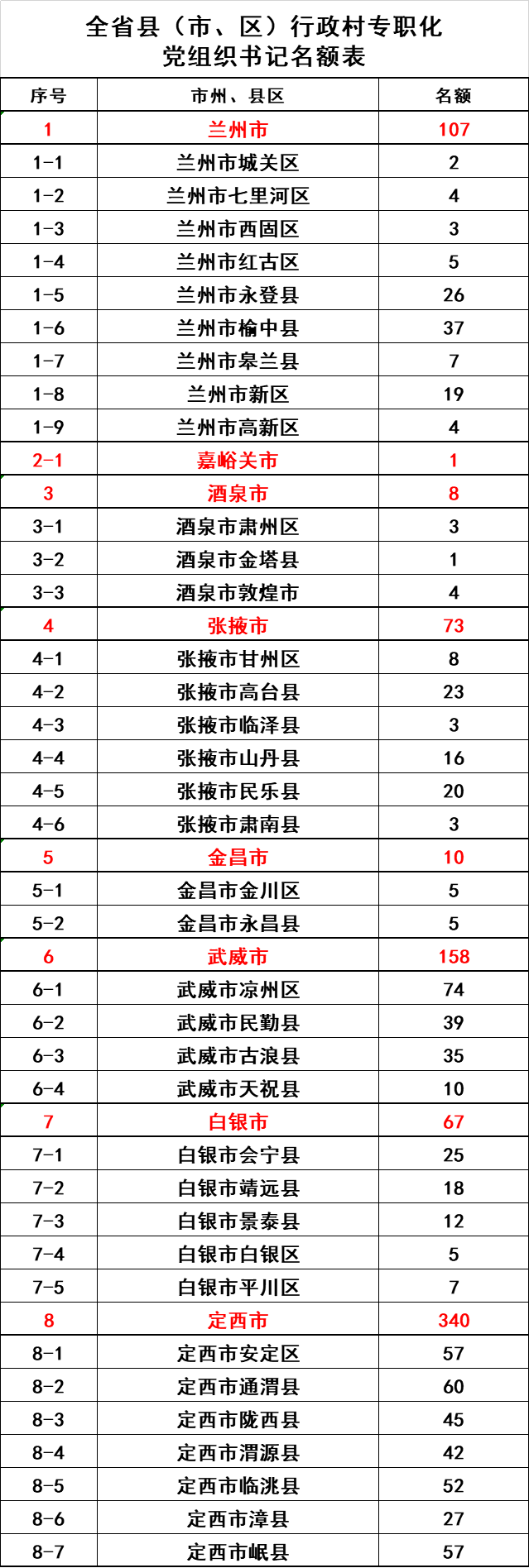 附件:全省县(市、区)行政村专职化党组织书记名额表