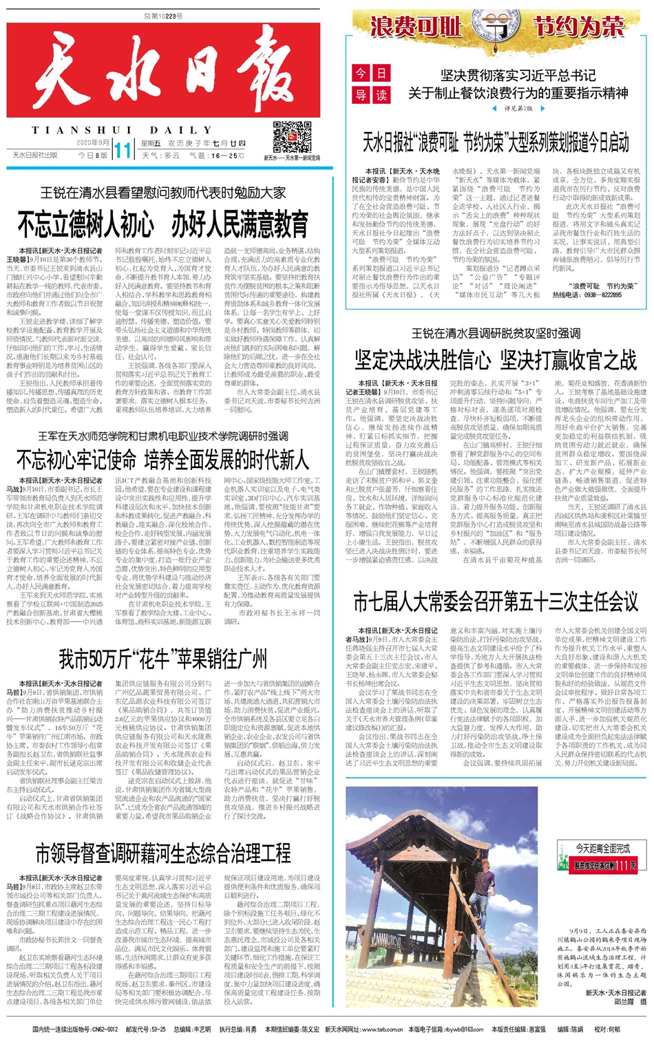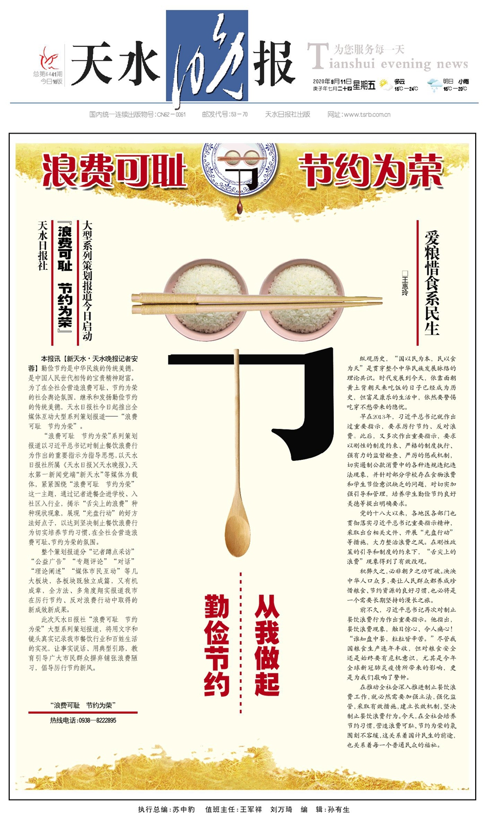 天水日报社“浪费可耻 节约为荣”大型系列策划报道今日启动