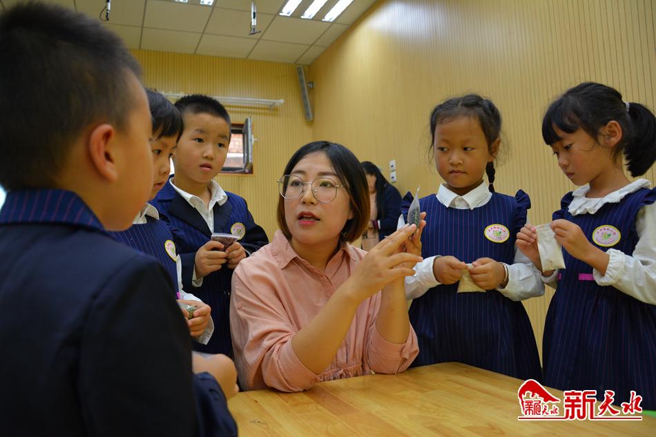 “稻谷需要经过种植、培育、收割、晾晒、加工等工序,才能变成我们餐桌上香喷喷的米饭,要好好珍惜每一粒米。”老师毛文婷一边举起手中的大米,一边为同学们讲述稻谷、大米、米饭之间的关系,了解粮食生产的来之不易。