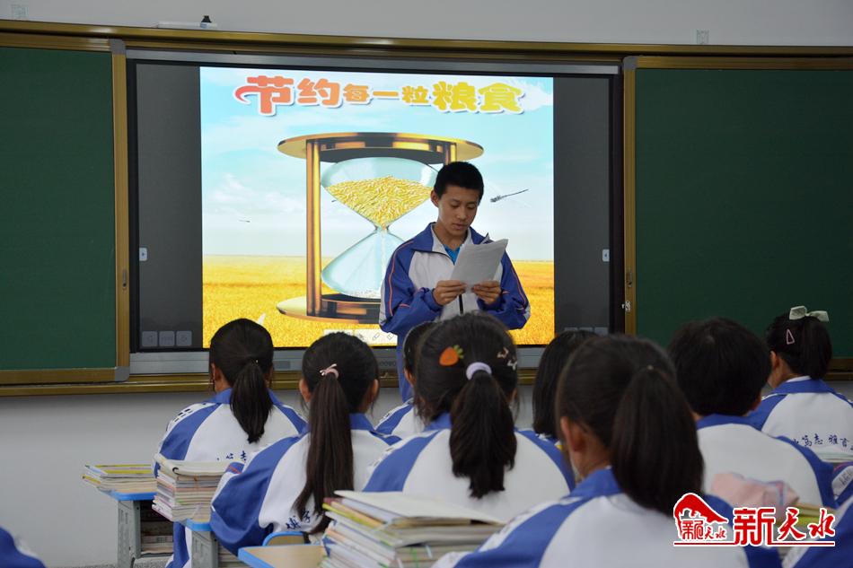 在新学期伊始,市第二中学通过演讲、主题班会,为学生讲授节约粮食,讲解节约粮食的重要性、必要性和浪费粮食的危害性,开展了“我和节约粮食”主题征文,让学生走上讲台分享诵读,教育和引导学生从自身做起、从身边小事做起,开展签名活动,倡导“光盘行动”。
