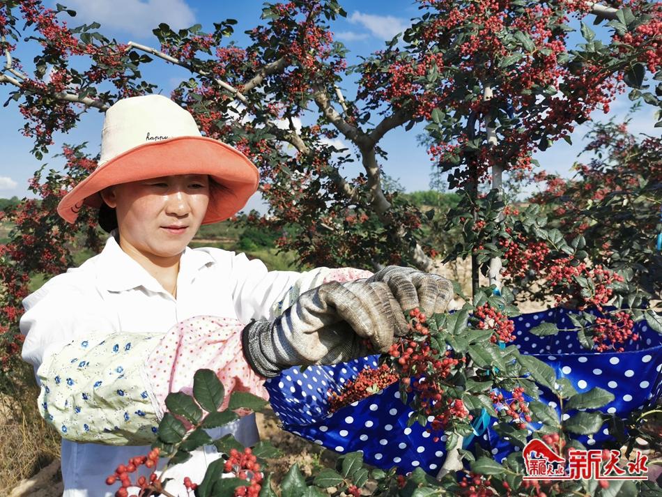 9月是收获的季节,千户镇处处一片丰收的景象:漫山遍野的花椒、苹果挂满枝头,果树下椒园里,菊花一朵朵一簇簇开的正艳;群众有的摘花椒、有的运苹果,还有的采菊花……忙碌的身影为山野凭添了几分活力与生机。
