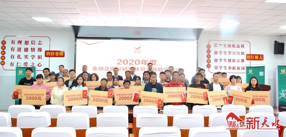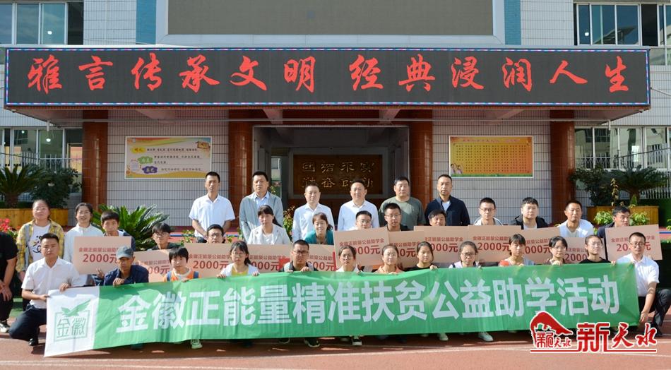 新天水讯 点滴之水,给人力量;微薄之光,给人方向!为帮助我市贫困家庭学子不因家庭困难而失学,金徽酒股份有限公司在我市两区五县举办了共七场"金徽酒正能量精准扶贫公益助学活动"一共资助188名贫困学生,每人资助2000元,资助金额共376000元。
