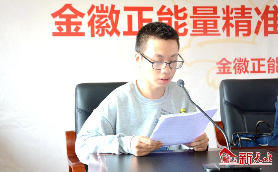 受资助学生张慧明代表所有受资助学生向金徽正能量公益基金会、金徽酒业股份有限公司的表达了感谢,金徽酒对他们的自资助,如同春雨般滋润了他们渴望求学的心灵,更激发了他们的感恩之心,人生有涯而恩情无边,滴水之恩当涌泉相报;他们会铭记这一份申请关爱,以优异的成绩回报社会。