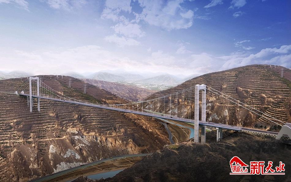 作为全线最有特色并且施工难度最大的控制性工程,选址于麦积区峡口村附近的渭河特大桥,横跨渭河、麦甘公路和陇海铁路,设计全长896米、高258米,建成后将是全国最高的悬索桥。