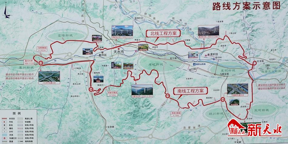 根据设计方案,天水市乡村振兴南北两山基础设施项目将有效串联秦州新城、中梁空港城、成纪新城、社棠工业城、东柯新城、颍川新城、麦积新城7大新城,以及秦州、麦积两区9个乡镇、38个行政村和23个旅游景点,实现与区域内国、省、县、乡道互联互通。