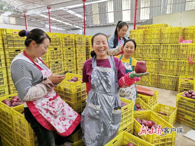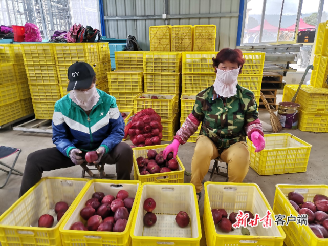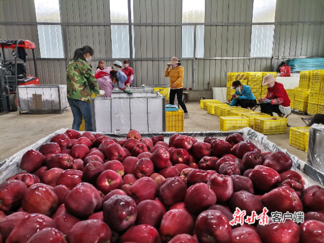 女工们分享苹果丰收的喜悦。