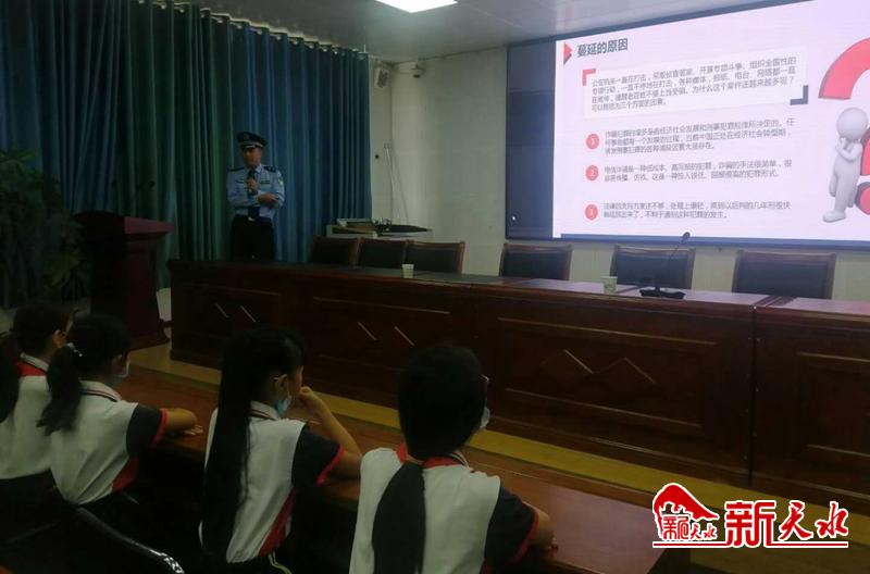 新天水讯【天水日报记者 余碧波】为进一步加强校园安全教育、提高师生法治意识、安全防范意识和自我防护能力,践行“平安校园”,秦州公安分局北关派出所根据“五进”要求,于9月18日下午,组织民警在天水市新华门小学开展以“手拉手践行法治心连心共建和谐校园”为主题的法治教育讲座,在讲座中民警重点“电信诈骗及其预防”“校园欺凌”“交通安全知识”等法律进行了讲解。