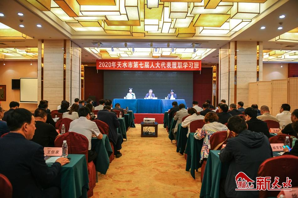 新天水讯【天水日报记者马放】9月14日至18日,根据《天水市第七届人大代表培训规划(2019—2021年)》,市人大常委会在昆明理工大学莲花校区国际学术交流中心举办2020年天水市第七届人大代表学习培训班。市人大常委会主任蒋晓强,副主任宋建平、王晓琴,秘书长杨坤,部分市七届人大代表和市人大常委会有关工作委员会、各县区人大常委会负责人参加培训。