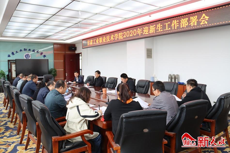 新天水讯 9月23日,甘工院召开2020年迎新生工作部署会议,会议由校党委副书记郭建忠主持,学工处、财务处、招生处、国资后勤处、保卫处、宣传统战部、团委等职能部门负责人和各二级学院迎新负责人参加会议。
