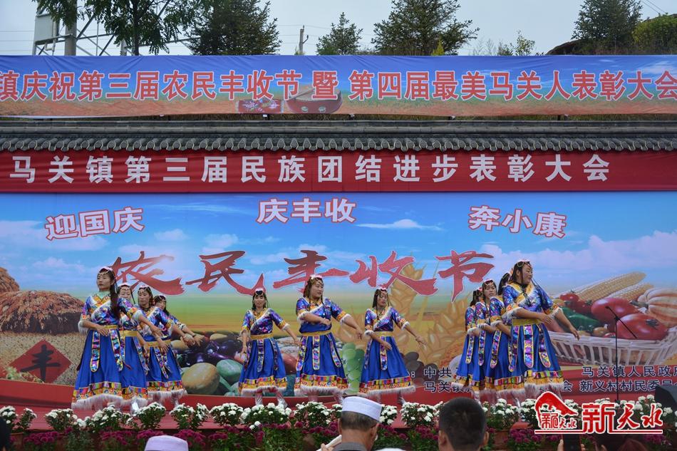 9月21日上午,雨。在马关镇石川村多功能农贸市场和新义文化广场,国歌嘹亮,干群肃立,以“迎国庆、庆丰收、奔小康”为主题的马关镇第三届农民丰收节暨首届农民工文化艺术节庆祝活动在向祖国致敬后拉开帷幕。
