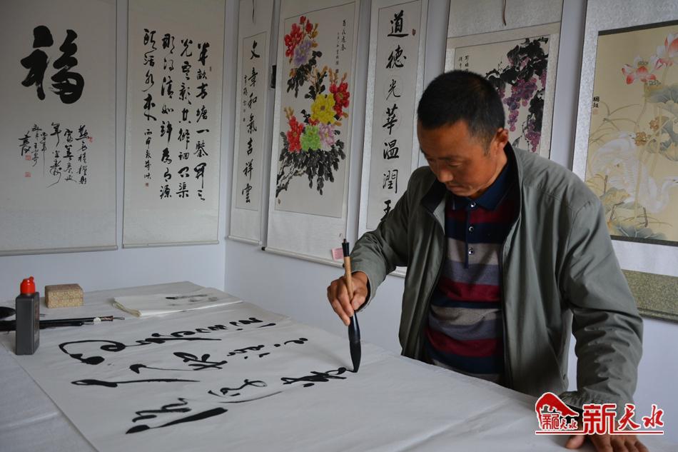 “问苍茫大地,谁主沉浮?”在农民书画展厅,这联还没有干透的书法晾在桌案上,笔触磅礴大气、强劲有力。作者不是哪位书法大家,而是建档立卡户窦伟强。窦伟强家早年间因病致贫,在政策的帮扶下,他贷了5万元的精准扶贫贷款,在镇上开了间字画装裱的铺面,还把自己的一些作品进行售卖,一年收入1万元,维持家用完全没问题。