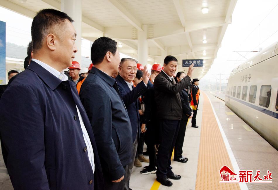 省政协副主席、天水市委书记王锐宣布宝兰客专天水南站动车组存车线工程竣工暨首列始发动车D8925发车。