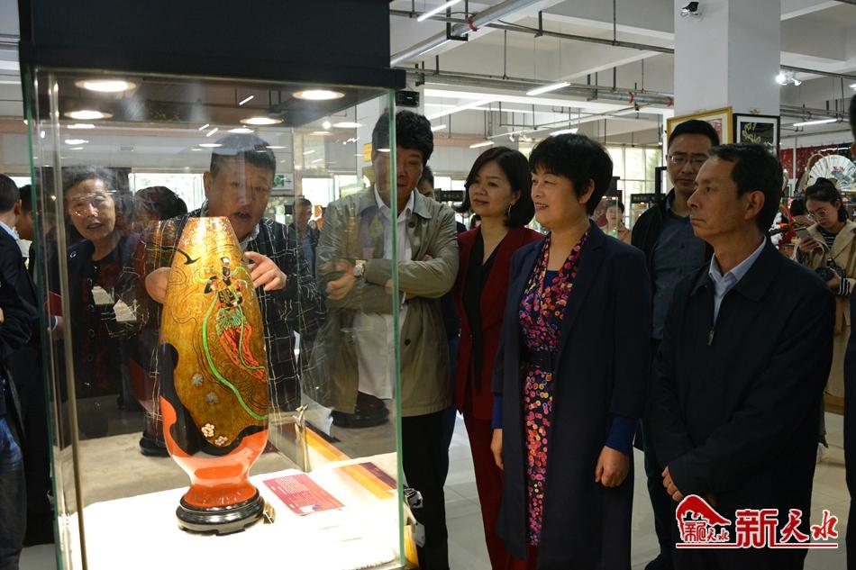 仪式结束后,汪小娟、屈光平一同参观了旅游商品创意设计展示展销。