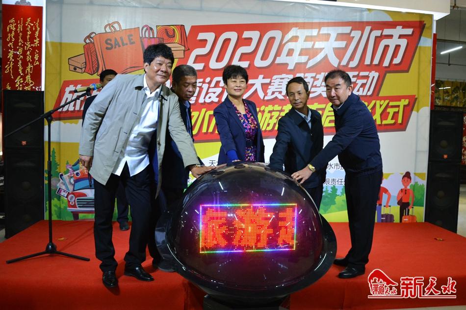 副市长汪小娟、市政协副主席屈光平出席仪式并一同按启天水旅游超市启动球。 据悉,本次旅游商品创意设计大赛参赛作品分为土特产品、文化创意和文物复制三大类型,共征集作品289种663件。经过评选,花牛苹果等3件作品获得金奖;盈麦香“天水呱呱”等6件作品获得银奖;伏羲卡通车载摆件等9件作品获得铜奖;伏羲式古琴等10件作品获得优秀奖;张家川县文旅局、清水县文旅局、秦州区文旅局被评为优秀组织奖。