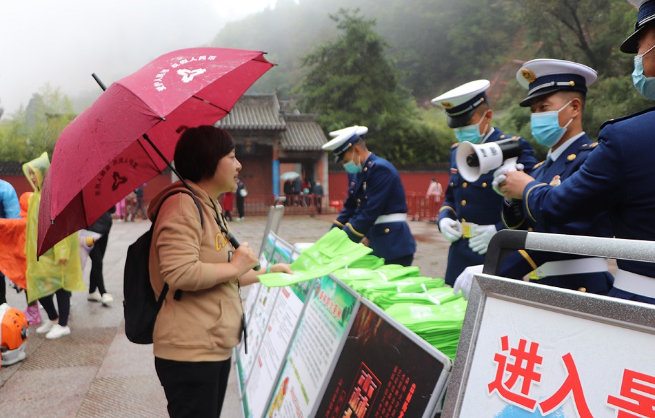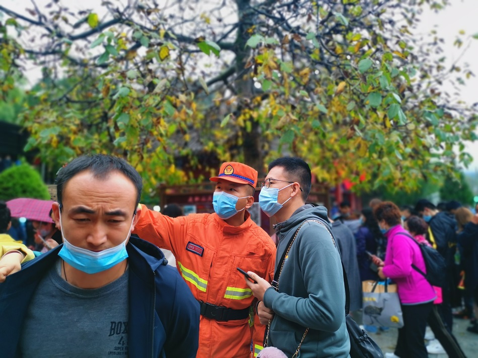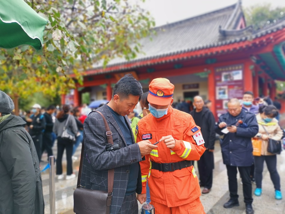随着中秋、国庆假期的到来,天水市麦积山景区游客增加,森林防火形势愈加严峻。为此,天水市森林消防大队紧跟时代步伐,积极利用抖音、快手等新媒体平台进行直播,运用多种形式在景区内开展森林防火宣传,配合景区工作人员疏导人流,全天候维护景区秩序,随时做好防火灭火和应急救援准备,为游客安全出游保驾护航,确保旅游高峰期景区火灾零发生。
