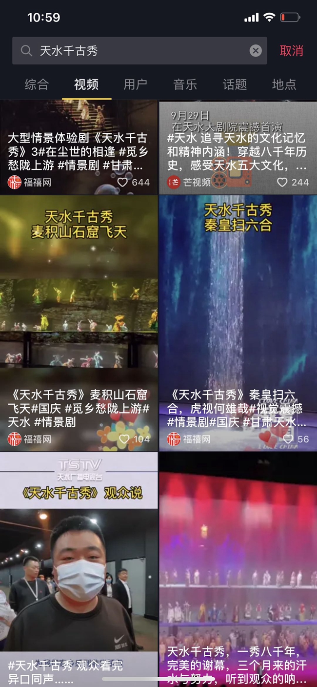 在微信朋友圈、抖音等社交平台,《天水千古秀》正在精彩上演的消息被大量转发。网友宁静致远说:《天水千古秀》是一部贯穿古今的历史巨制,也是文化爱好者来天水不可错过的“满汉全席”。网友悠然说:天水千古秀,一秀八千年。真正的视觉震撼,来天水一定要看!