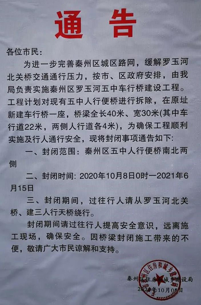 现将封闭事项通告如下: