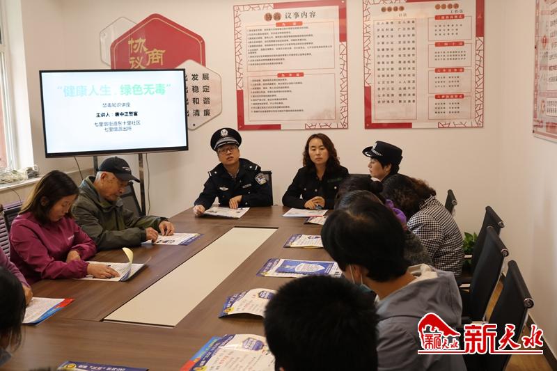 新天水讯 为了进一步加强和普及禁毒宣传教育,使广大居民认清毒品的危害,激发居民积极参与禁毒斗争的热情,提高拒毒防毒意识和自觉抵制毒品侵袭的能力。2020年10月10日上午,七里墩街道东十里社区邀请社区民警唐中正警官在社区道德讲堂里为辖区居民开展了一次“健康人生,绿色无毒”为主题的禁毒法律知识讲座,有50余人社区居民参加了此次活动。