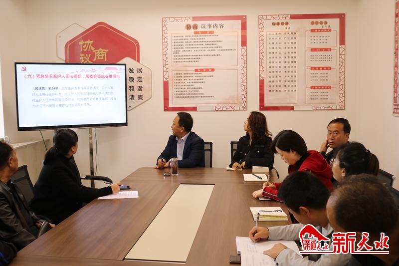 随后,天秦律师事务所主任王朝晖为大家讲了关于《民法典》的法律知识讲座。王律师深入浅出的讲解了《民法典》产生的过程和它的重大意义,并着重讲解了 “婚姻家庭”和“未成年人保护”这两部份法律内容的更新和进步。王律师表示,《民法典》中好多法律条文跟《中国共产党纪律处分条例》是相对应的,作为党员干部要知法守法,要树立优良家风,弘扬家庭美德,重视家庭文明建设。
