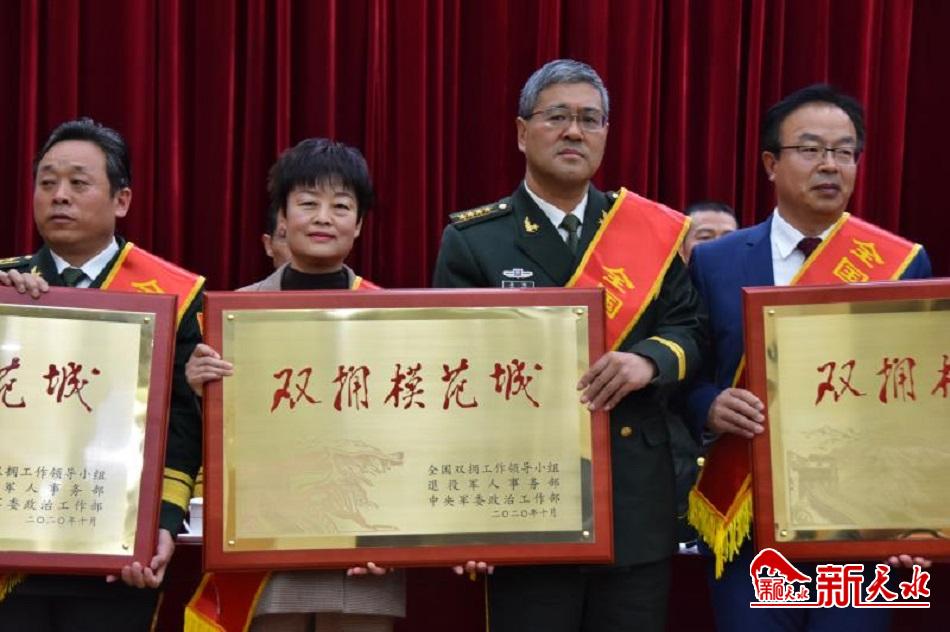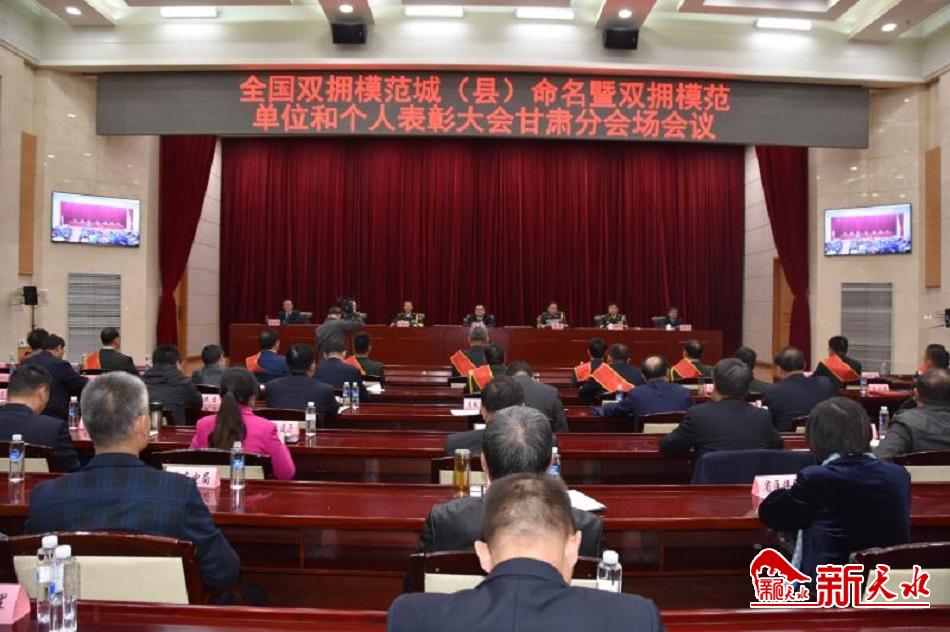 大会宣读了关于命名411个全国双拥模范城(县),关于表彰全国爱国拥军模范单位和拥政爱民模范单位,关于表彰全国爱国拥军模范和拥政爱民模范的决定。向受到命名表彰的全国双拥模范城(县)、双拥模范单位和个人代表颁奖。在受表彰的411个全国双拥模范城(县)名单位中,天水市名列其中,荣获全国双拥工作领导小组、退役军人事务部、中央军委政治工作部共同命名的“全国双拥模范城”荣誉称号,这是天水市连续第六次获得全国双拥模范城殊荣,实现了全国双拥模范城“六连冠”。