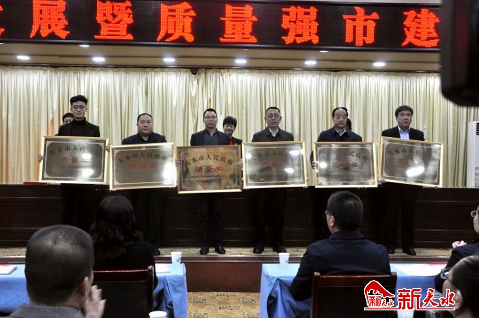 会上表彰奖励了天水众兴菌业科技股份有限公司、甘肃海林中科科技股份有限公司、甘谷平光玻璃工艺有限公司、天水华洋电子科技股份有限公司、天水永生建筑工程有限责任公司、麦积山石窟艺术研究所等6家第五届天水市人民政府奖获奖单位和获得市政府质量奖的天水锻压机床(集团)有限公司和天水长开互感器制造有限公司。