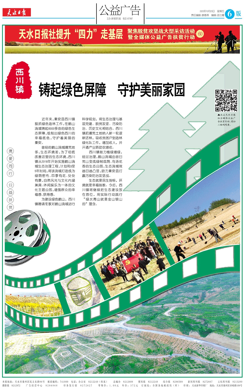 近年来,秦安县西川镇狠抓绿色造林工作,在鹤山流域铸起6000多亩的绿色生态屏障,绘制出绿色西川的幸福底色,守护着美丽的秦安。