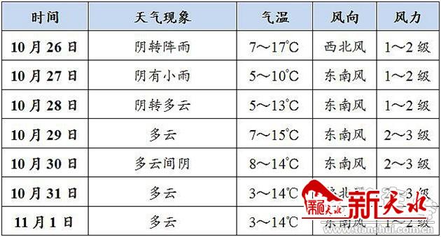 未来一周,我市天气以阴为主,其中27日阴有小雨。