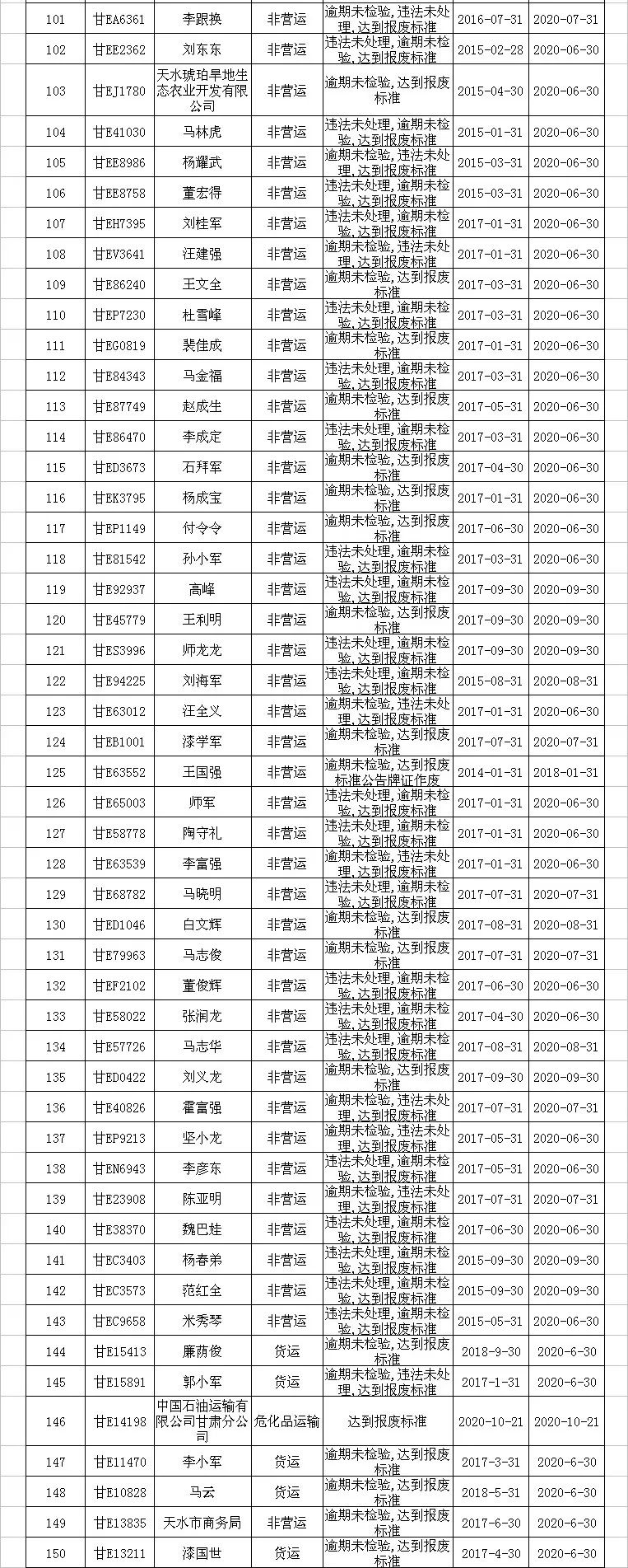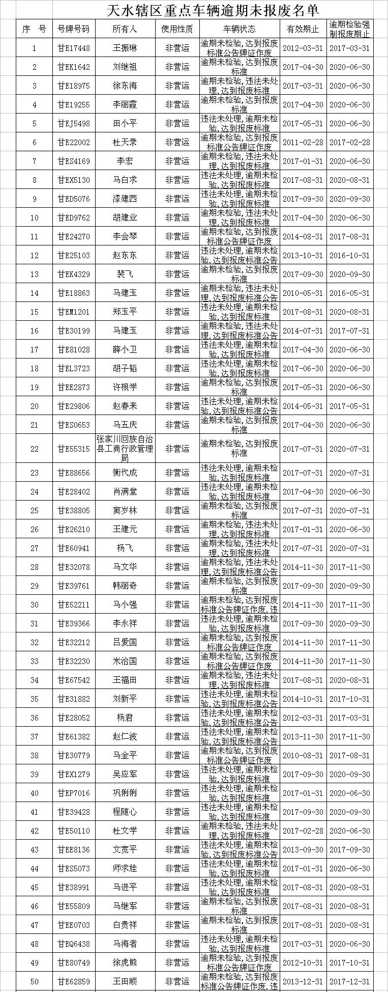 【提醒】天水市逾期未报废重点车辆名单曝光