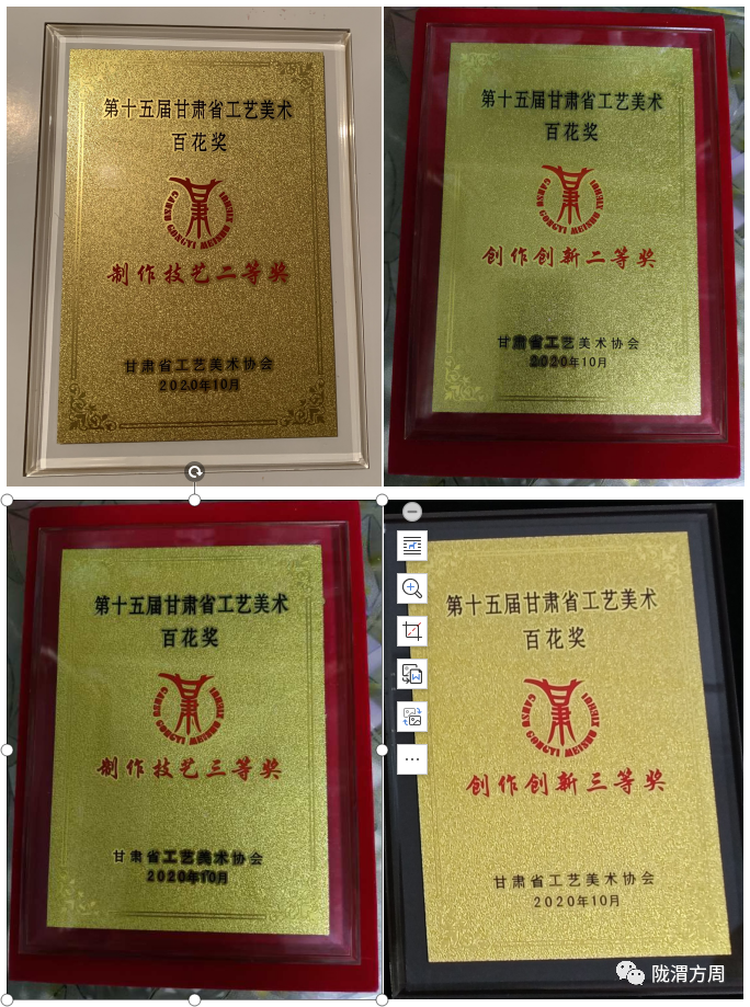 甘肃省工艺美术“百花奖”是省内工艺美术行业最高奖,是1980年经省计委和省轻工业厅批准的对甘肃工艺美术行业评选优质产品的奖项,到2020年已成功评审了15届。本届百花奖评选,有相对较多的武山手艺人参评并且获奖丰硕,这是武山手工艺品走出家门,登上外界大舞台的一次新的突破,更是 “武山手艺” 创造纪录的一件大喜事!非常难得,令人欣慰和振奋!一方面告诉我们武山民间艺术家群体总体上具备的实力和水平,一方面说明作为 “民间文化艺术之乡” 拥有丰富的民间文化艺术资源的武山县在这方面的潜力和希望,为今后我县更多的民间艺人及其作品更上新台阶、走出去、开拓新的发展天地鼓舞了信心!