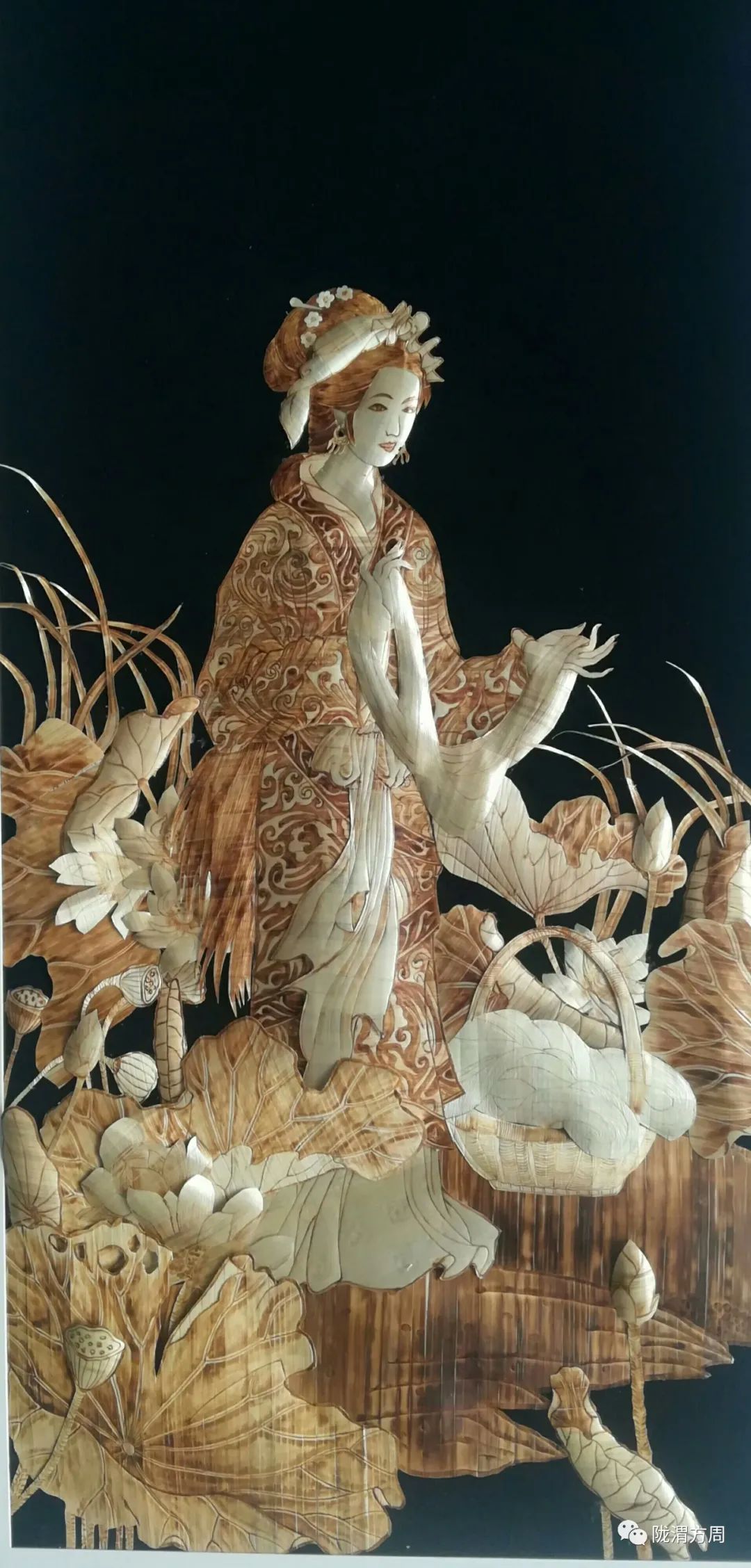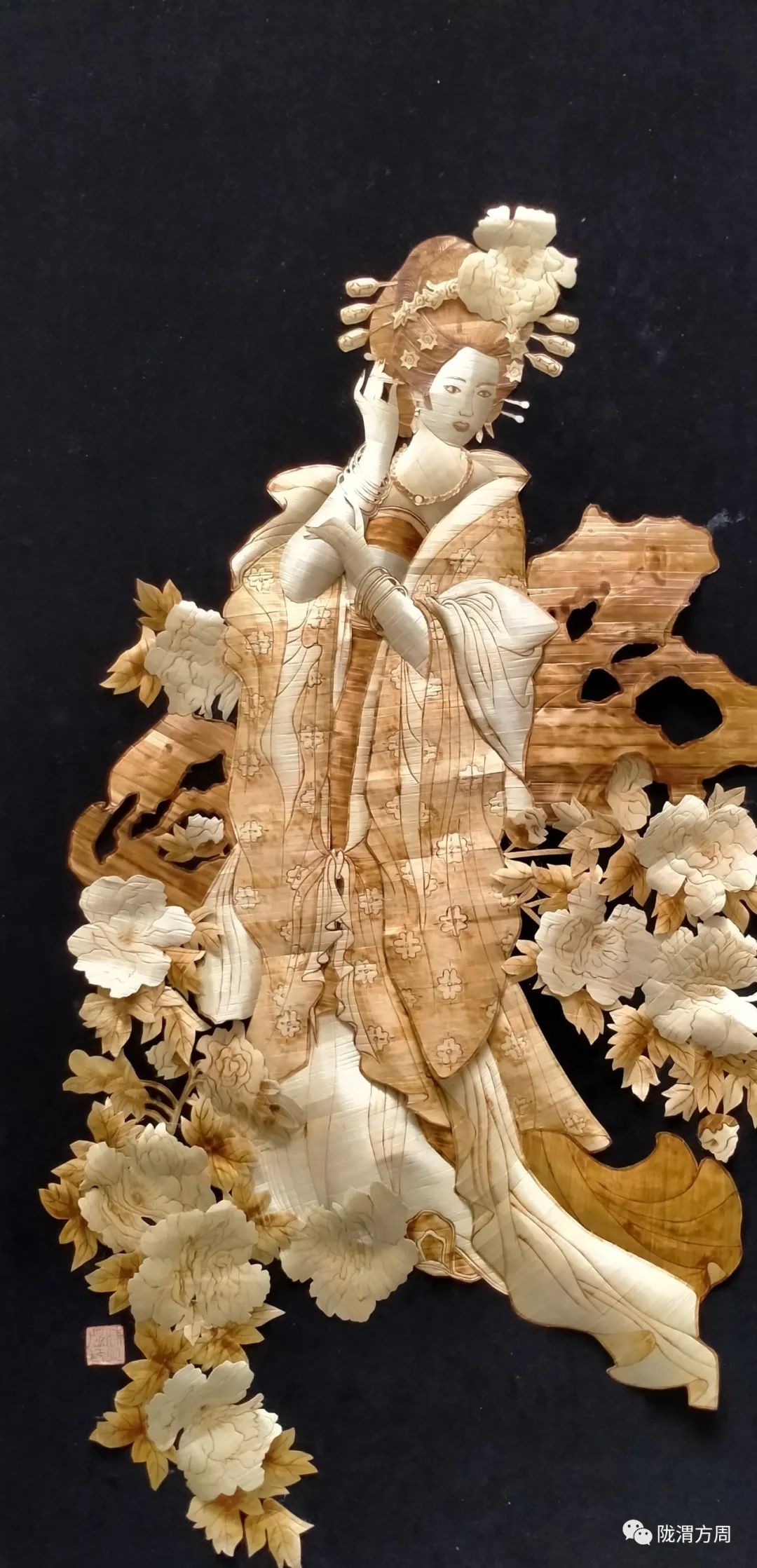 武山龙台籍麦秆画、树皮画女艺人,武山县民间文艺家协会理事、甘肃省工艺美术协会会员漆小妮,其设计并制作的麦秆画《贵妃醉酒》、《四大美女》、《西施浣纱》分别荣获创新创作一等奖,制作技艺二等奖、创新创作二等奖;