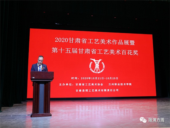 2020年10月21日上午,由甘肃省工艺美术协会、兰州职业技术学院、甘肃易琛工艺美术有限责任公司共同主办的“2020甘肃省工艺美术作品展暨第十五届甘肃省工艺美术百花奖评审活动”在兰州职业技术学院总校区礼堂隆重开幕。甘肃省工业和信息化厅党组成员、副厅长李生发,甘肃省工业经济和信息化研究院院长包卓军,甘肃省人民政府文史研究馆党组书记、馆长朱涛,甘肃易琛工艺美术有限责任公司董事长巨一波,甘肃省工艺美术协会会长陈一珀,兰州职业技术学院党委书记寇桂杰,副书记、院长宋贤钧、副院长范宏伟及部分师生出席开幕式。