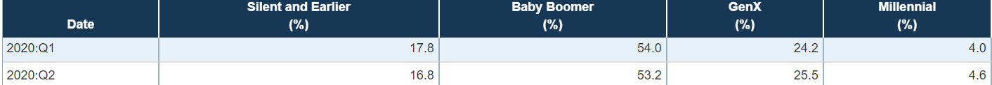 但是,千禧一代“完美错过”了过去几个月,乃至十年来美股上涨带来的财富增值机会,因为他们的证券投资资产(证券及投资基金)仅占总量的2.2%,而婴儿潮一代的证券投资却占到55.3%(据美联储数据)。