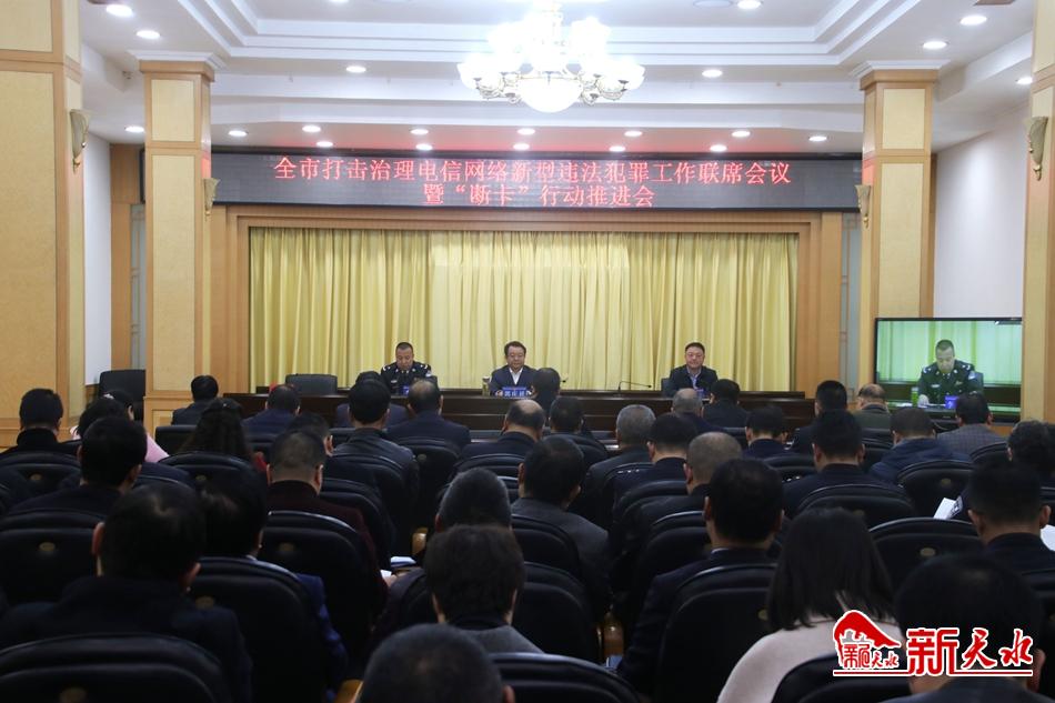 新天水讯【天水日报记者王晓馨】10月31日上午,我市召开打击治理电信网络新型违法犯罪工作联席会议暨“断卡”行动推进会。副市长、市公安局局长郭庆祥出席会议并讲话。