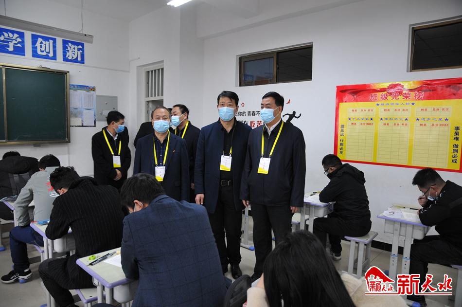 新天水讯【天水日报记者 童强】10月31日,全国二级建造师考试和2020年下半年甘肃省中小学教师资格全国统一考试(笔试)于当日进行。副市长逯克宗现场巡视了天水考场。