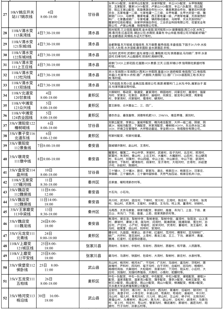 由于电力系统倒闸操作的特殊性,工作期间根据线路、设备以及天气状况有临时调整停电日期、时间以及停电区域的可能,敬请谅解。