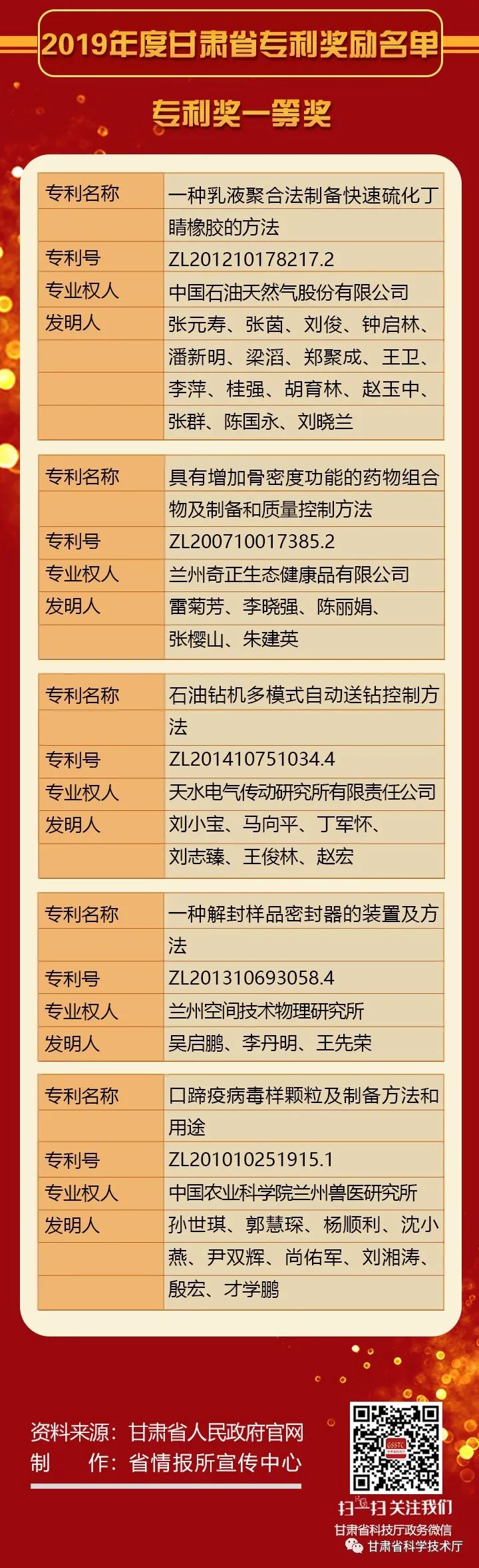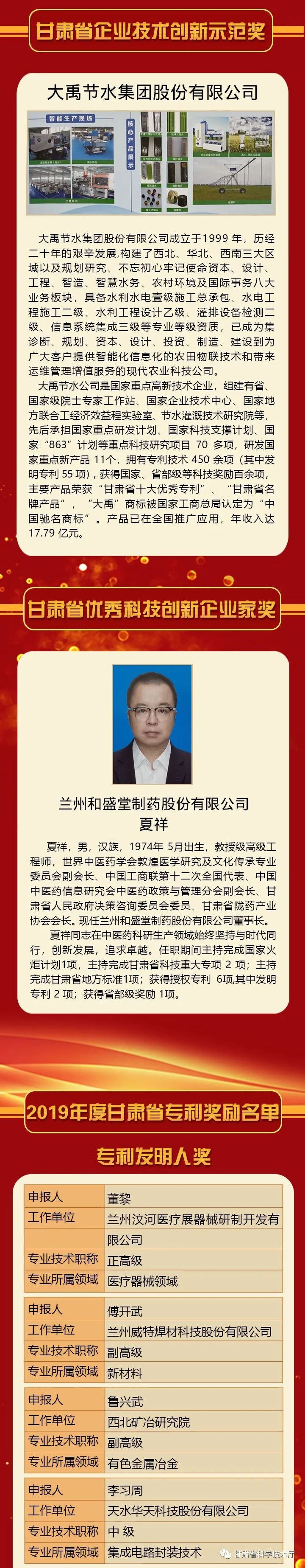 一图了解 | 2019年度甘肃省科学技术奖励 甘肃省专利奖励 获奖代表展示