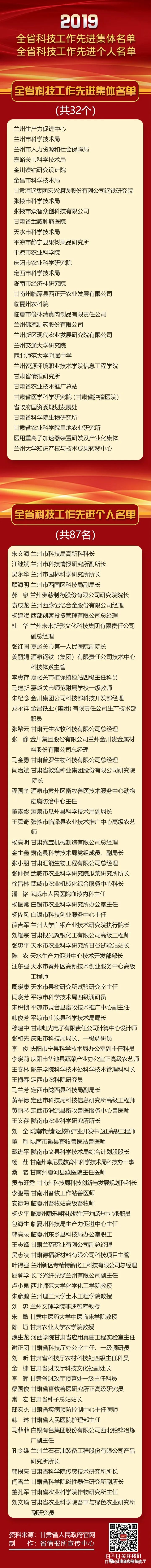 一图了解 | 2019年度全省科技工作先进集体名单 全省科技工作先进个人名单
