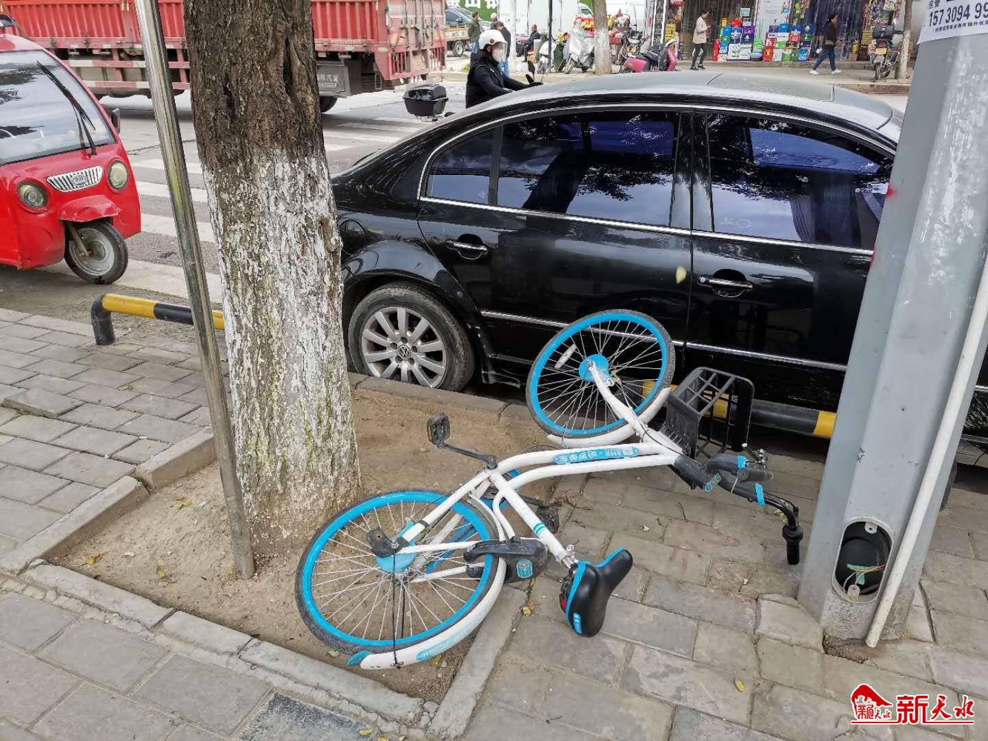 新天水讯【天水日报记者 余碧波】近日,在秦州区罗玉路,一辆共享单车被人推倒在地,共享单车因环保方便为市民服务,希望大家都能爱护。